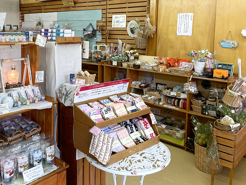 クラフト館の2階では香木の森ならではのオリジナルハーブティーや地域の産品を取り揃えております。